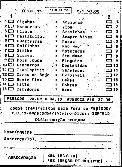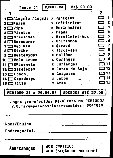 Poucos devem se lembrar, mas o Boliche já teve sua loteria esportiva. Foi no Campeonatão de 1987, nos meses de agosto a novembro.